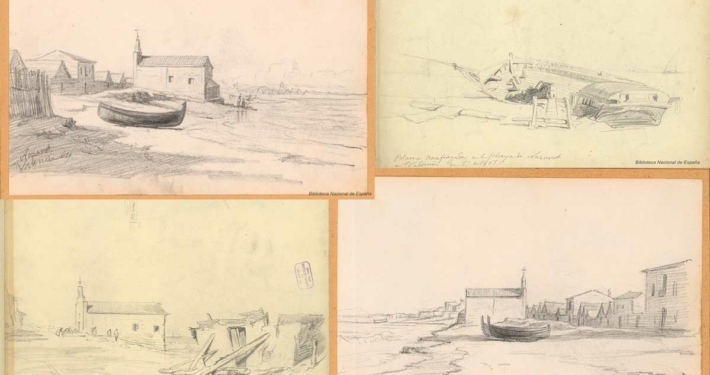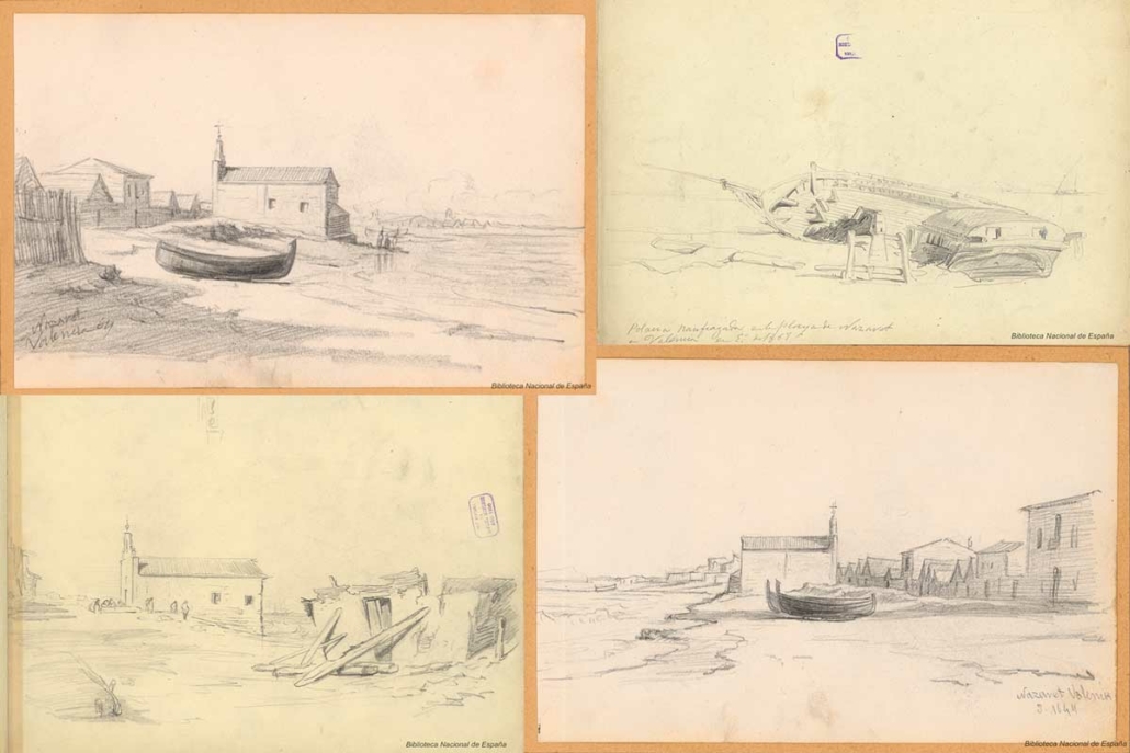 Natzaret amb el llapis de Rafael Monleón i Torres: dibuixos de l’ermita i la platja (1864)